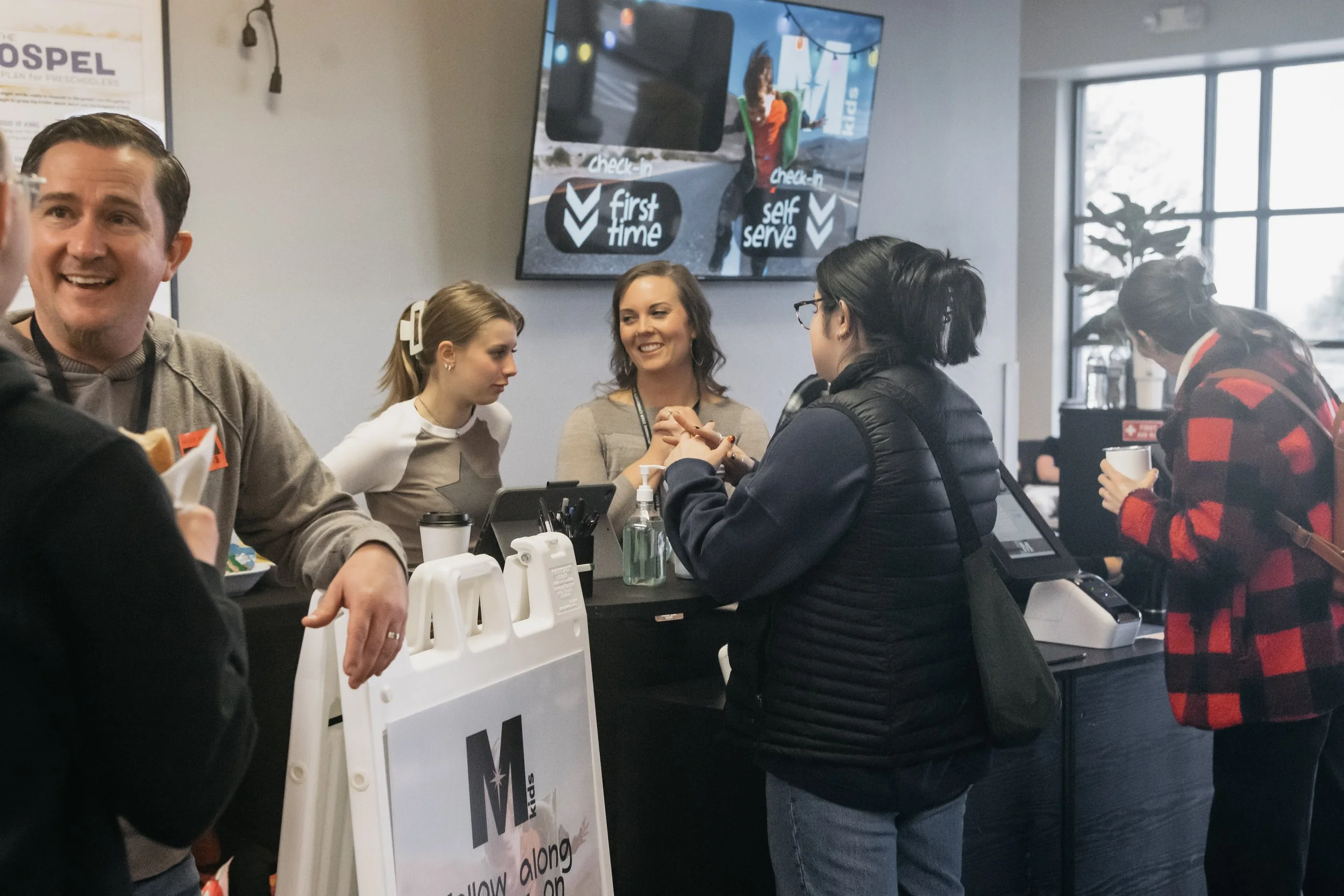 When you come for the first time, our parking team will help direct you to a spot. If you have young kids, come in through our Family Entrance to meet our Kids team and check out our options for Sunday school. Through our Main Entrance in the lobby you’ll find our Welcome Center, where we have several people ready to help you get settled and answer any questions!