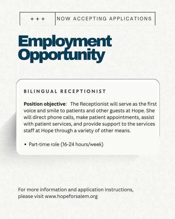 Questions? Contact Beth Maurer at beth@hopeforsalem.org or by calling 503-364-2464.